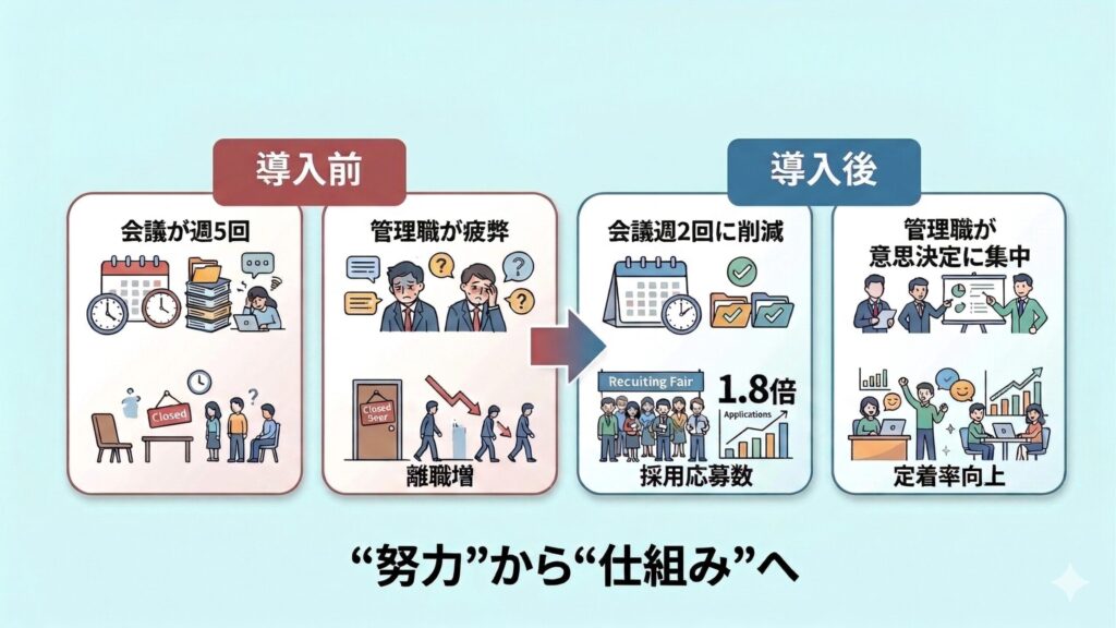 - 会議削減 → 年間数百時間削減