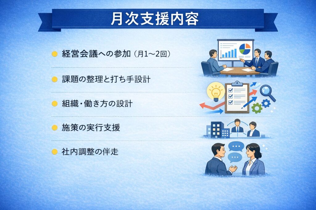 会社の回し方そのものを設計し直す顧問サービスです。